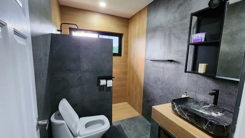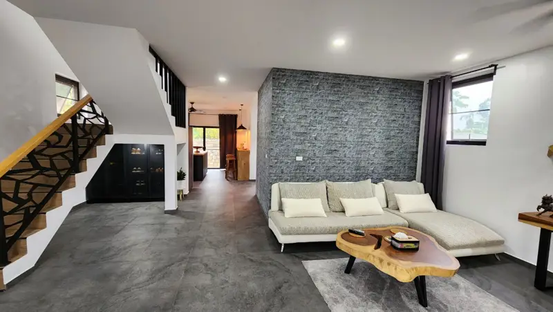 1 big terace, fully furnished, the house was finish in December 2022, have double wall with termo isolation (ytong), diamond