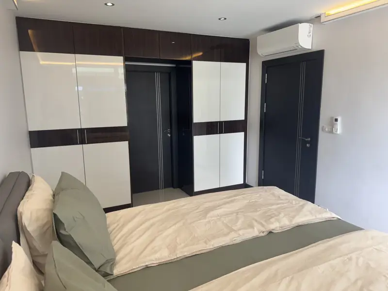 This unit is totally renovated, with all walls and ceiling painted. Brand new air cons in all rooms. New beds and mattresses. New bedsheets and towels. New sofa and living room furniture. New 75-inch smart tv. New dishwasher and kitchenware. New washing machine. New extractor fan in the kitchen. New balcony fans and blinds. Scorpion door with code and fingerprint system. Paintings for the walls are ordered. Etc. Etc