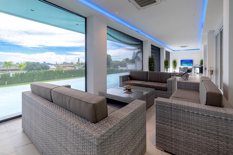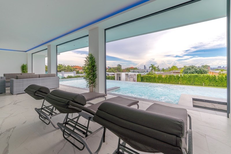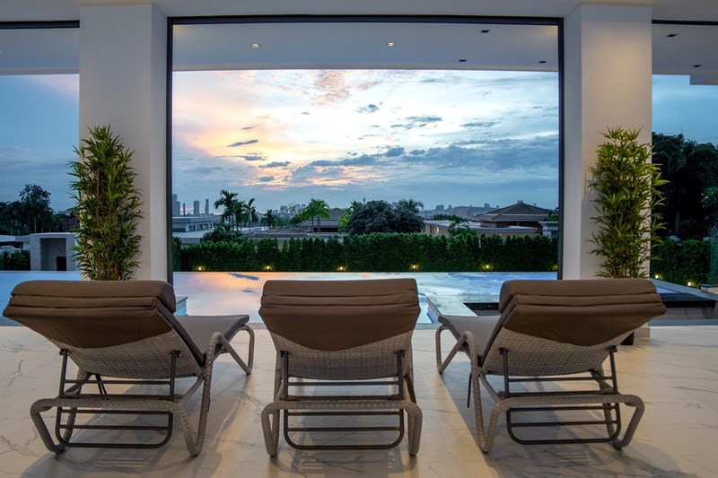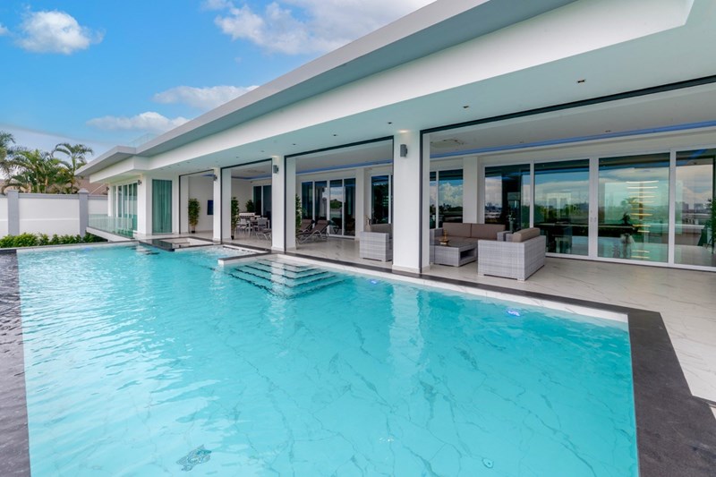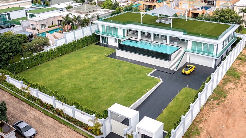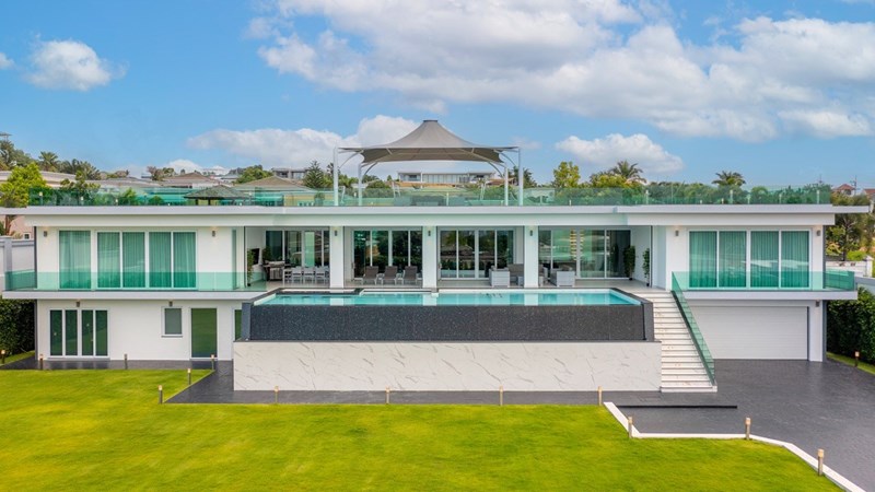 Located in the prestigious Siam Royal View Estate, this state of the art retreat boasts impeccable design and features 10 bedrooms and 12 bathrooms.