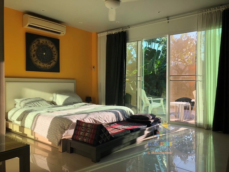 เฟอร์นิเจอร์ครบพร้อมสิ่งตกแต่ง มีสระว่ายน้ำ บ้านตั้งอยู่ที่พระตำหนักซอย 5 อยู่ใกล้กับหาดยินยอม