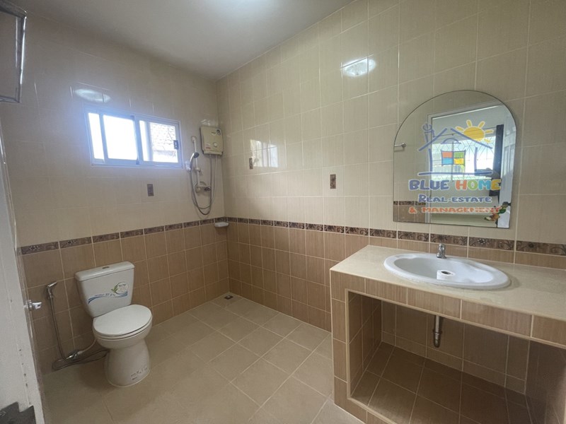 3 ห้องนอน 2 ห้องน้ำ 1 ห้องเอนกประสงค์ข้างบ้าน จอดรถ 5 คัน, แอร์ 4 เครื่อง, ปั๊มน้ำ แท้งค์น้ำ