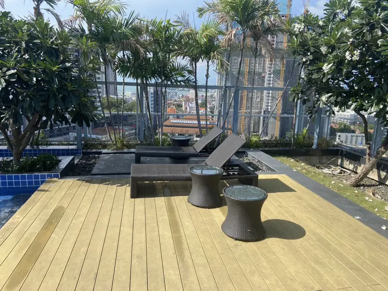 สิ่งอํานวยความสะดวกที่ Treetops Pattaya (ทรีท็อปส์ พัทยา) ประกอบด้วย ที่จอดรถ, เจ้าหน้าที่อำนวยความสะดวก, สวน, เตาย่าง, ยิม, ยาม และ สระว่ายน้ำ.